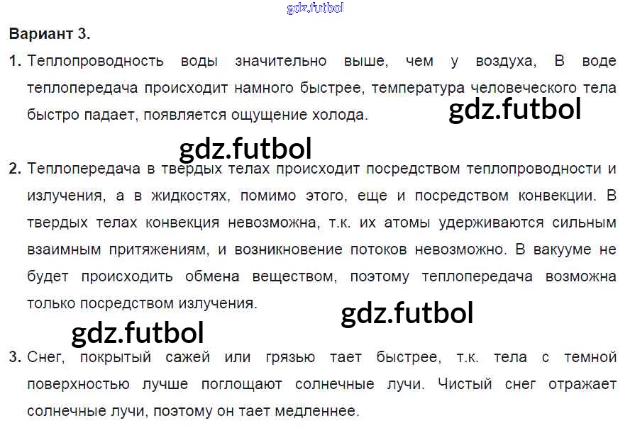 Готовые домашние задания по Физике за 8 класс Марон Дидактические материалы Вертикаль 2016 ФГОС - СР №2. Виды теплопередачи. Варианты 3