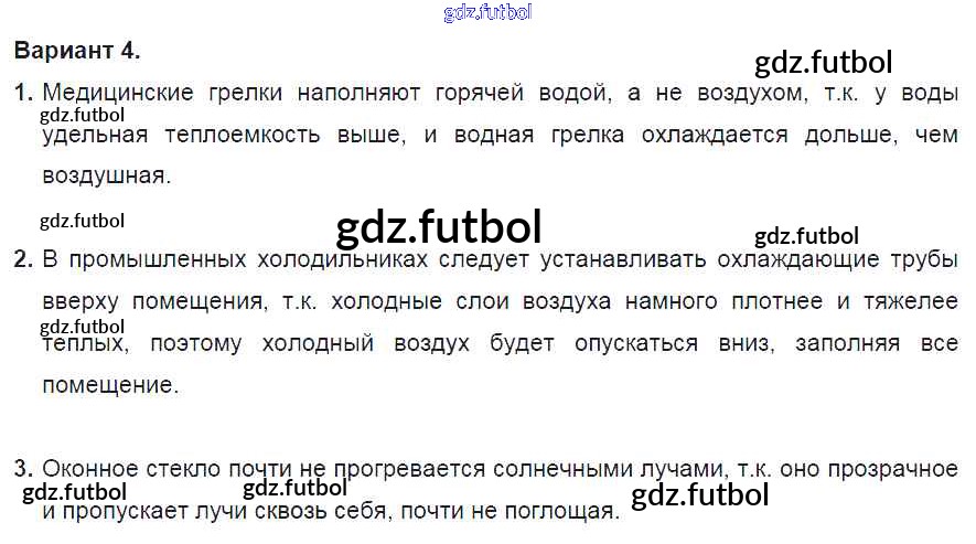 Готовые домашние задания по Физике за 8 класс Марон Дидактические материалы Вертикаль 2016 ФГОС - СР №2. Виды теплопередачи. Варианты 4