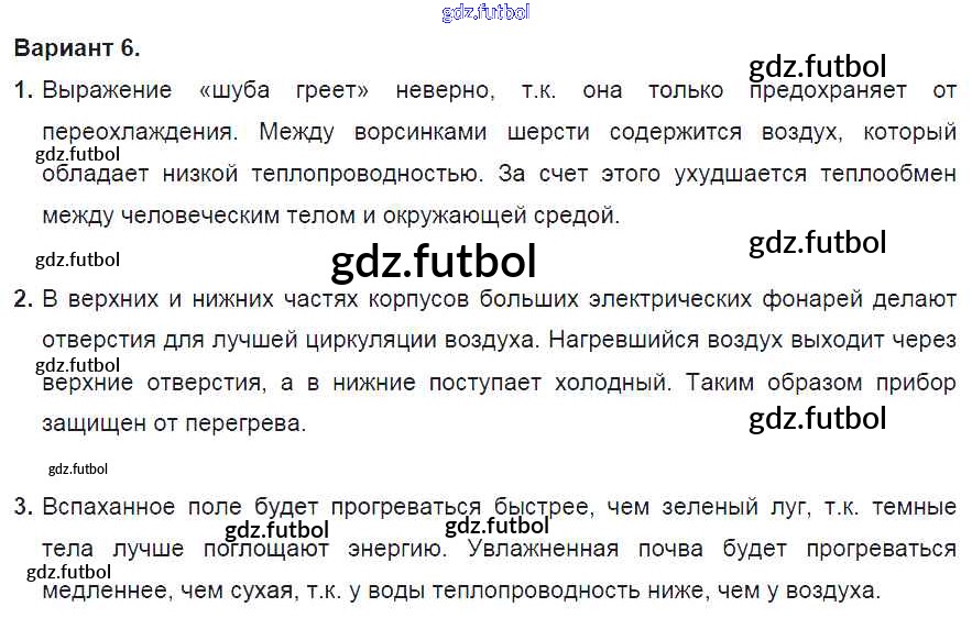Готовые домашние задания по Физике за 8 класс Марон Дидактические материалы Вертикаль 2016 ФГОС - СР №2. Виды теплопередачи. Варианты 6