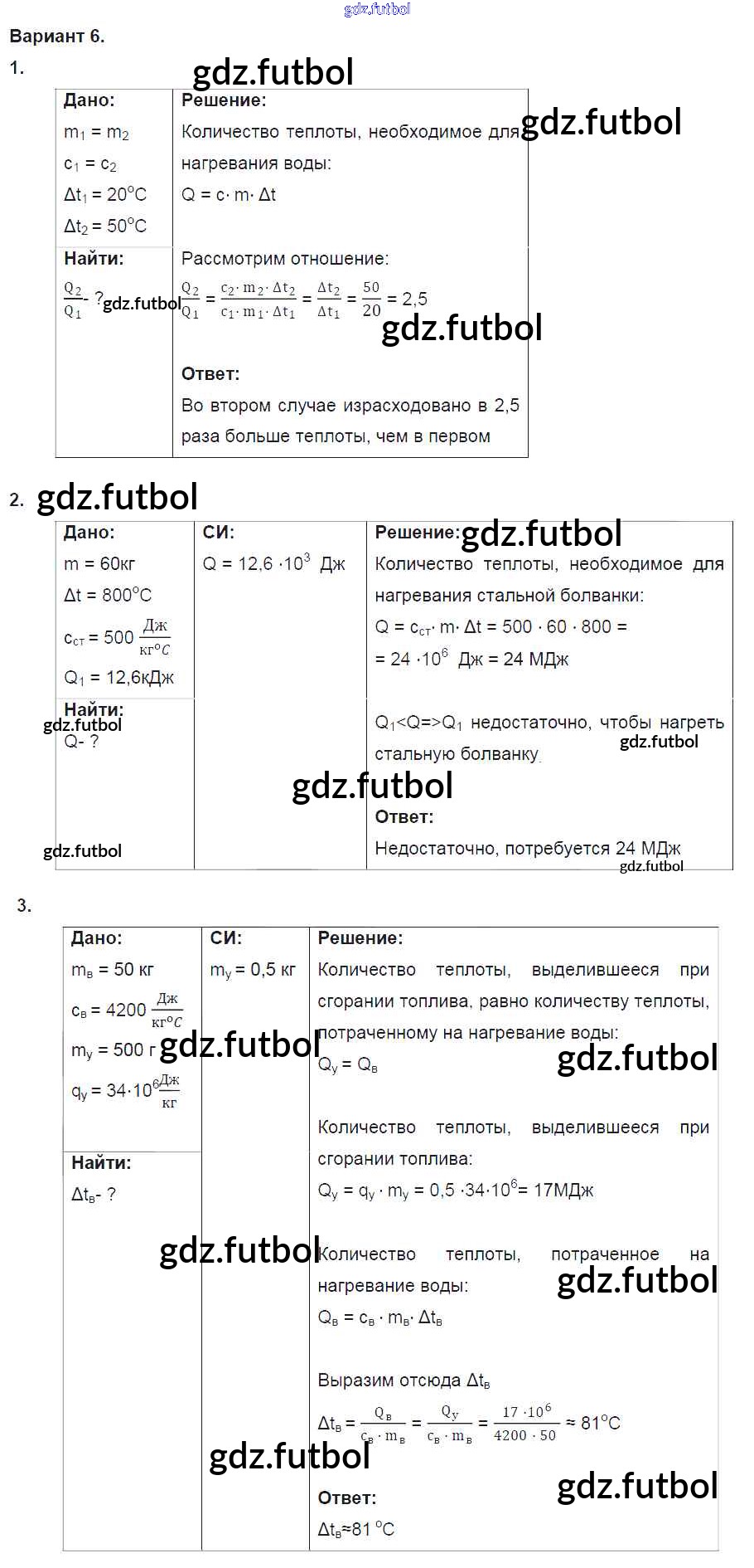 Готовые домашние задания по Физике за 8 класс Марон Дидактические материалы Вертикаль 2016 ФГОС - СР №3. Количество теплоты. Энергия топлива. Варианты 6