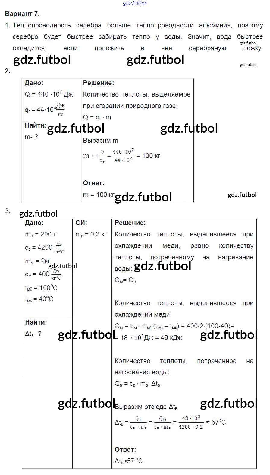 Готовые домашние задания по Физике за 8 класс Марон Дидактические материалы Вертикаль 2016 ФГОС - СР №3. Количество теплоты. Энергия топлива. Варианты 7