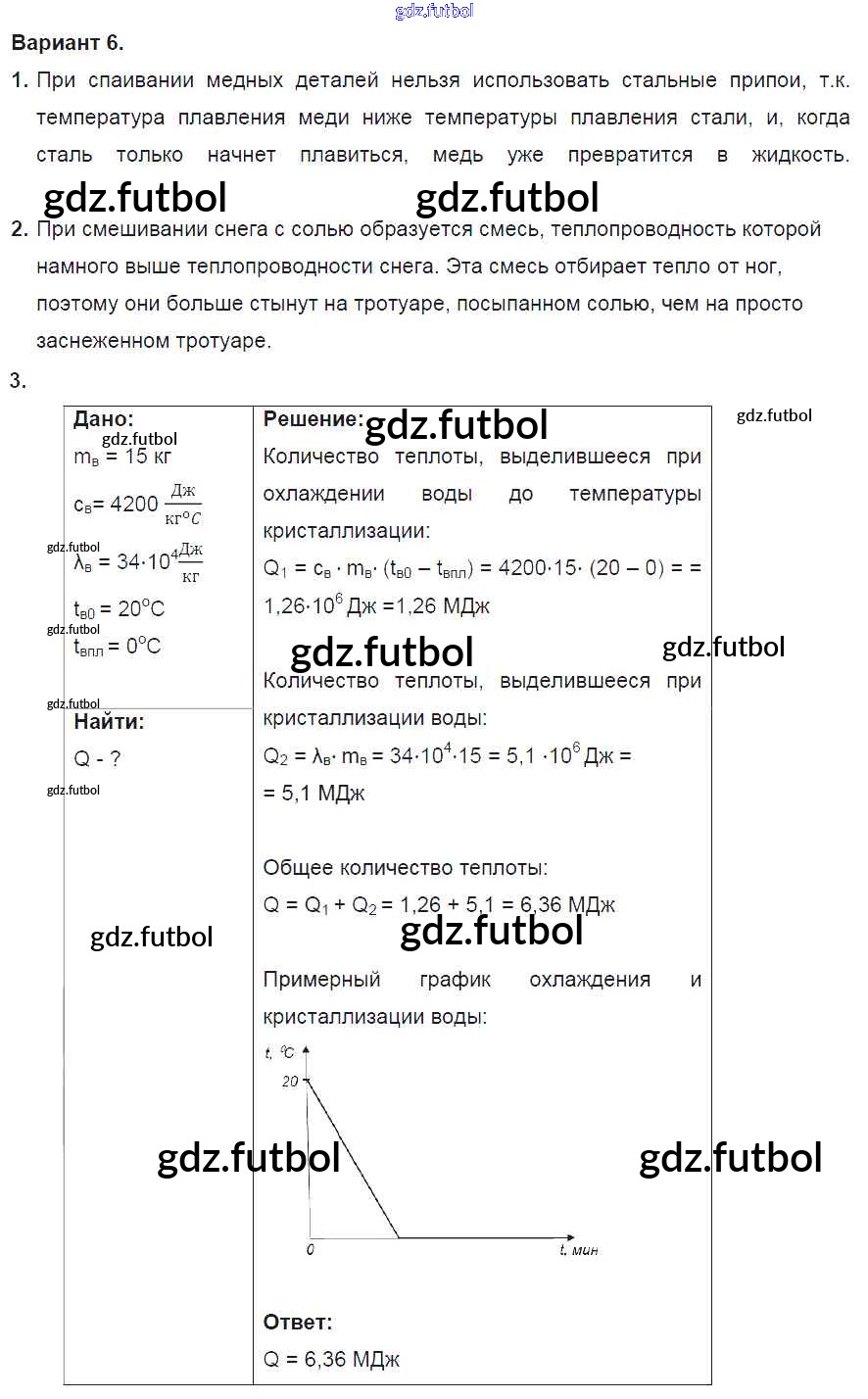 Готовые домашние задания по Физике за 8 класс Марон Дидактические материалы Вертикаль 2016 ФГОС - СР №4. Плавление и отвердение. Варианты 6