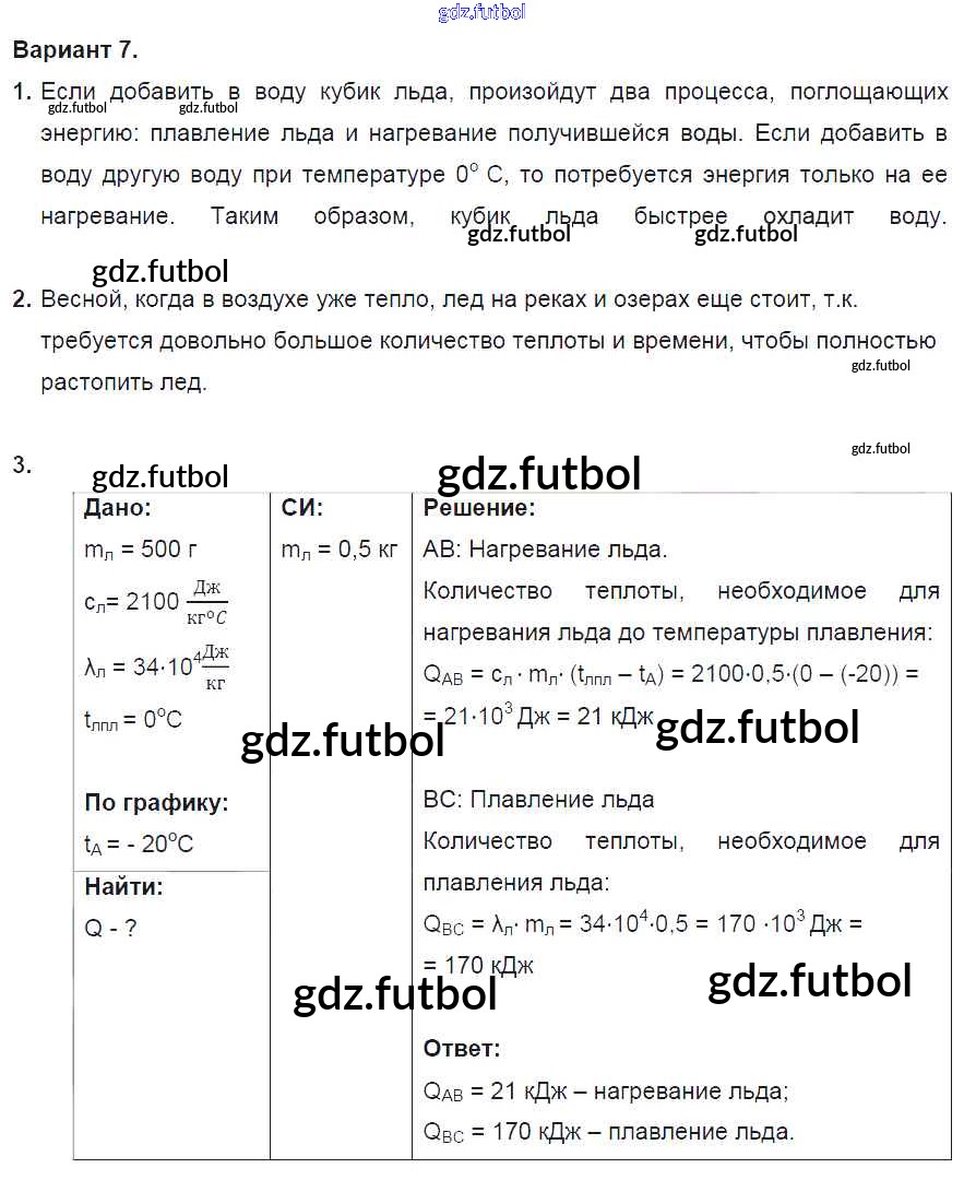 Готовые домашние задания по Физике за 8 класс Марон Дидактические материалы Вертикаль 2016 ФГОС - СР №4. Плавление и отвердение. Варианты 7