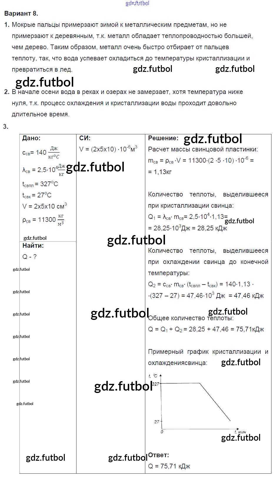Готовые домашние задания по Физике за 8 класс Марон Дидактические материалы Вертикаль 2016 ФГОС - СР №4. Плавление и отвердение. Варианты 8