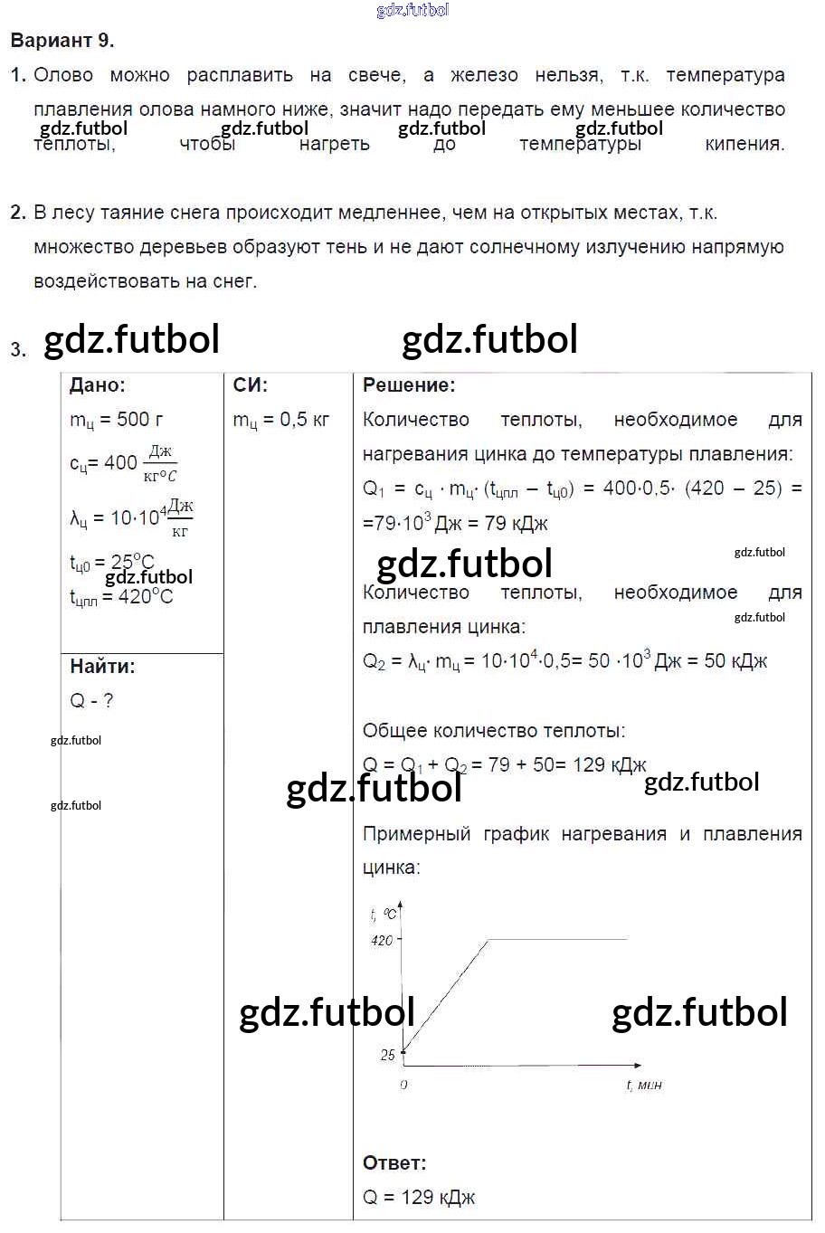 Готовые домашние задания по Физике за 8 класс Марон Дидактические материалы Вертикаль 2016 ФГОС - СР №4. Плавление и отвердение. Варианты 9