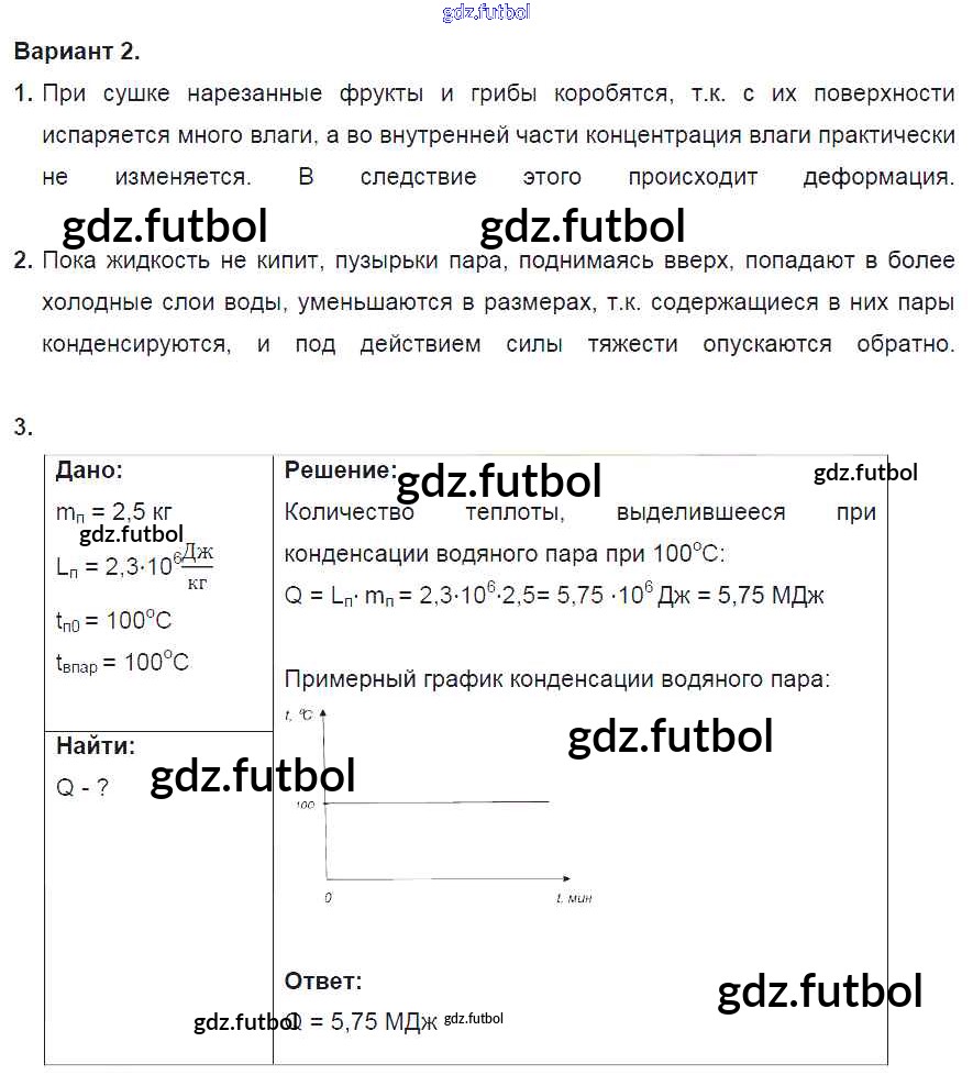 Готовые домашние задания по Физике за 8 класс Марон Дидактические материалы Вертикаль 2016 ФГОС - СР №5. Испарение и конденсация. Варианты 2