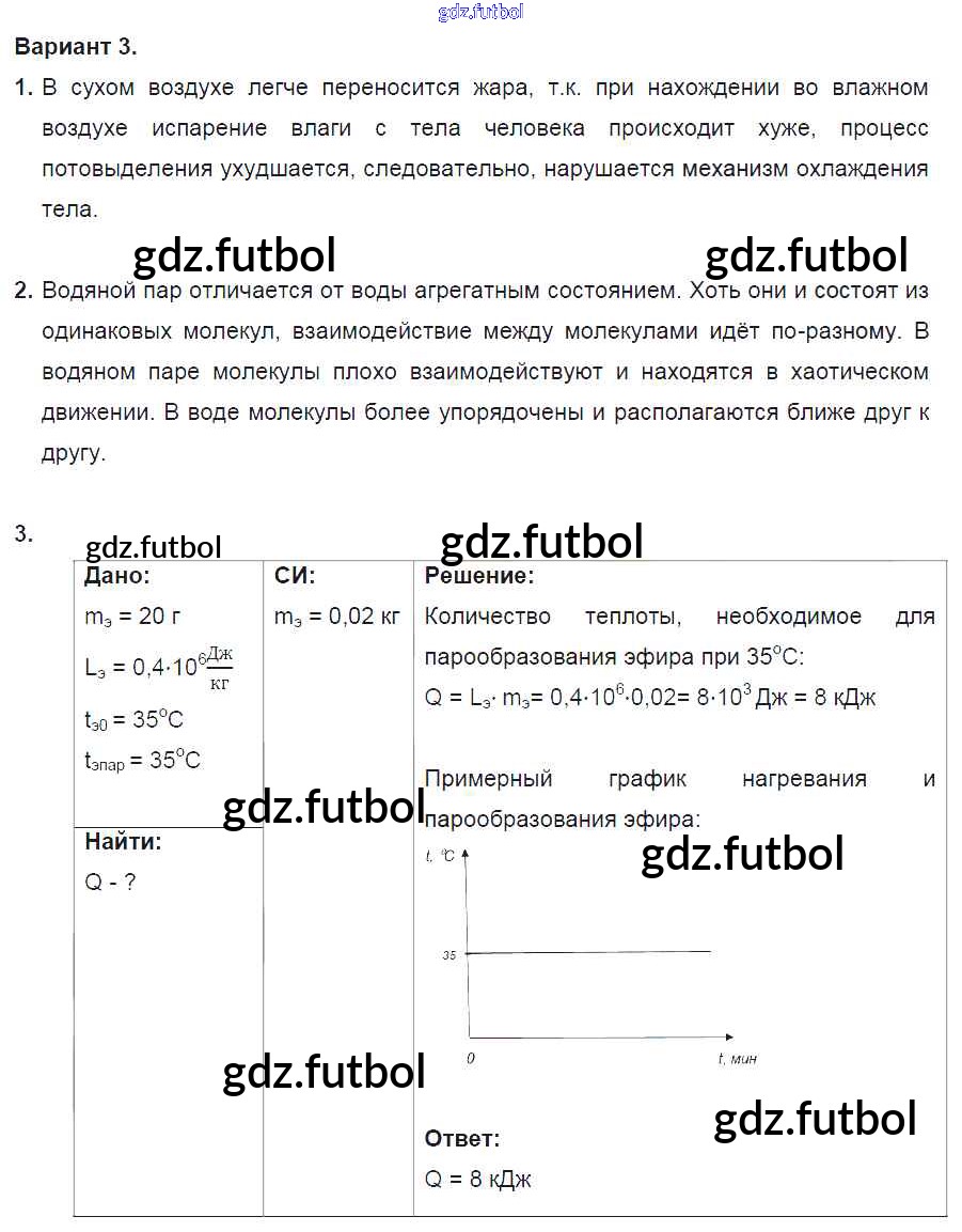 Готовые домашние задания по Физике за 8 класс Марон Дидактические материалы Вертикаль 2016 ФГОС - СР №5. Испарение и конденсация. Варианты 3
