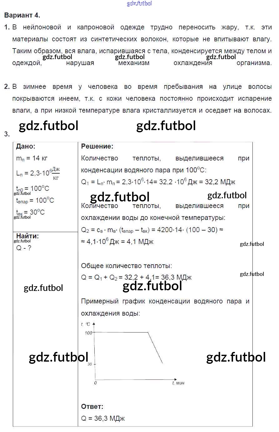 Готовые домашние задания по Физике за 8 класс Марон Дидактические материалы Вертикаль 2016 ФГОС - СР №5. Испарение и конденсация. Варианты 4
