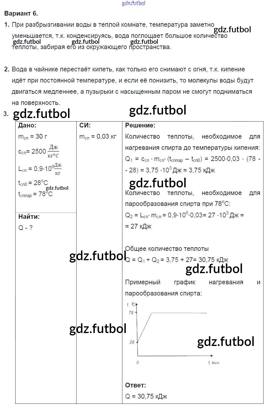 Готовые домашние задания по Физике за 8 класс Марон Дидактические материалы Вертикаль 2016 ФГОС - СР №5. Испарение и конденсация. Варианты 6