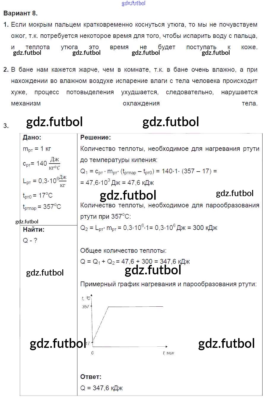 Готовые домашние задания по Физике за 8 класс Марон Дидактические материалы Вертикаль 2016 ФГОС - СР №5. Испарение и конденсация. Варианты 8
