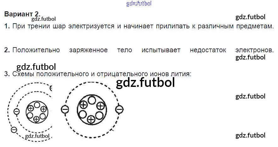 Готовые домашние задания по Физике за 8 класс Марон Дидактические материалы Вертикаль 2016 ФГОС - СР №6. Электризация тел. Электрическое поле. Строение атома. Варианты 2