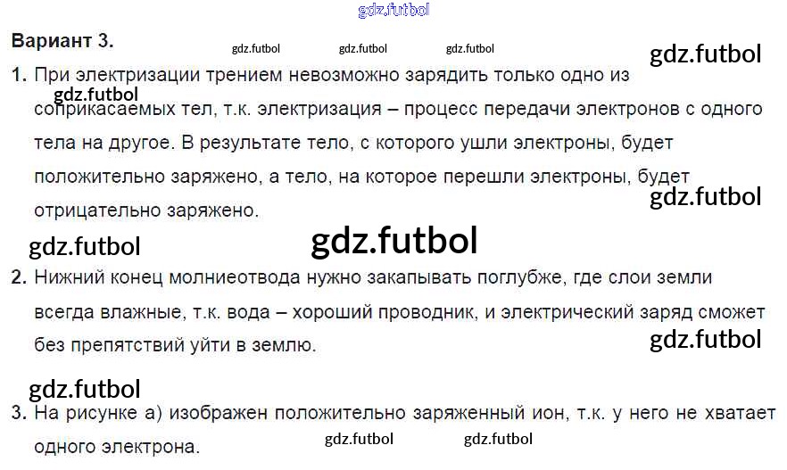 Готовые домашние задания по Физике за 8 класс Марон Дидактические материалы Вертикаль 2016 ФГОС - СР №6. Электризация тел. Электрическое поле. Строение атома. Варианты 3
