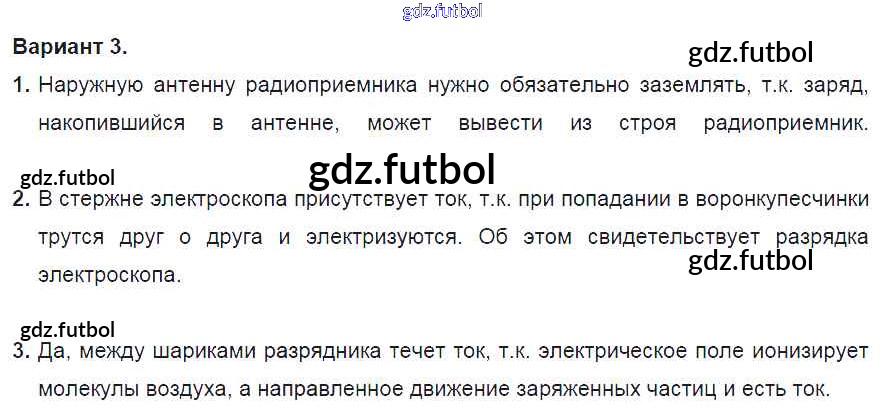 Готовые домашние задания по Физике за 8 класс Марон Дидактические материалы Вертикаль 2016 ФГОС - СР №7. Электрический ток. Варианты 3