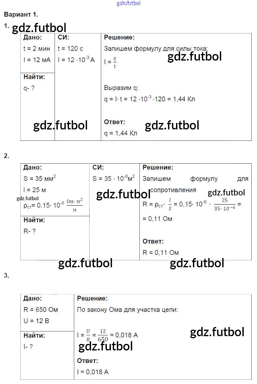 Готовые домашние задания по Физике за 8 класс Марон Дидактические материалы Вертикаль 2016 ФГОС - СР №8. Сила тока. Напряжение. Закон Ома для участка цепи Варианты 1
