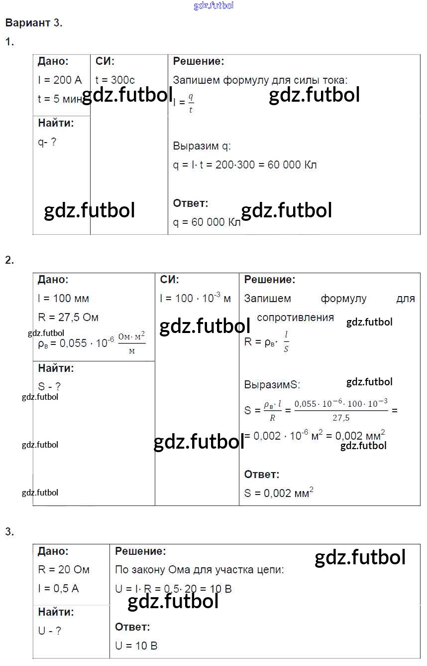 Готовые домашние задания по Физике за 8 класс Марон Дидактические материалы Вертикаль 2016 ФГОС - СР №8. Сила тока. Напряжение. Закон Ома для участка цепи Варианты 3