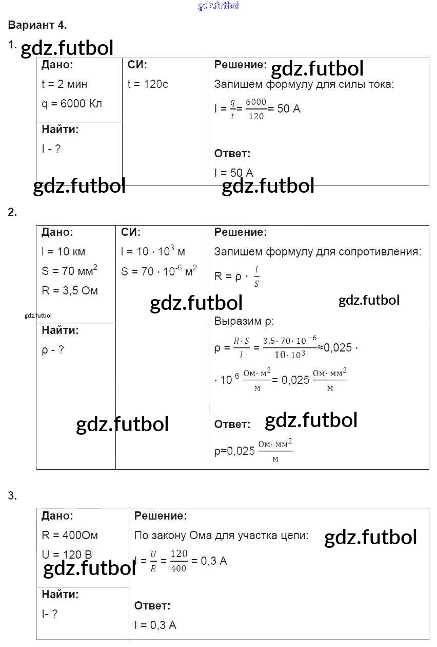 Готовые домашние задания по Физике за 8 класс Марон Дидактические материалы Вертикаль 2016 ФГОС - СР №8. Сила тока. Напряжение. Закон Ома для участка цепи Варианты 4