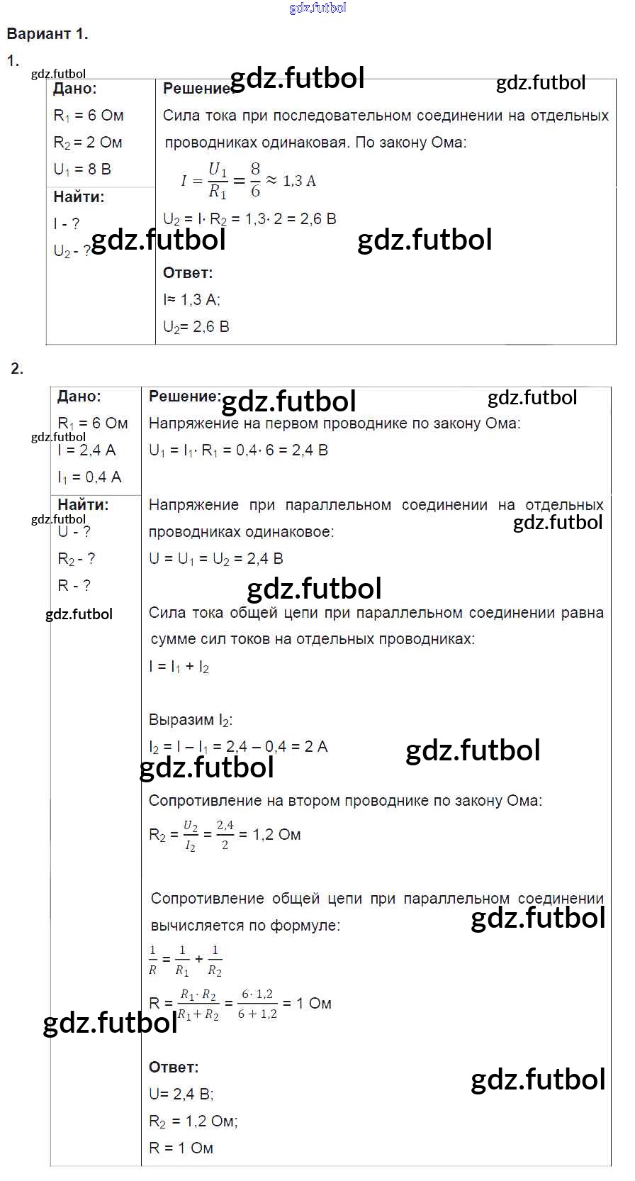 Готовые домашние задания по Физике за 8 класс Марон Дидактические материалы Вертикаль 2016 ФГОС - СР №9. Соединение проводников. Варианты 1