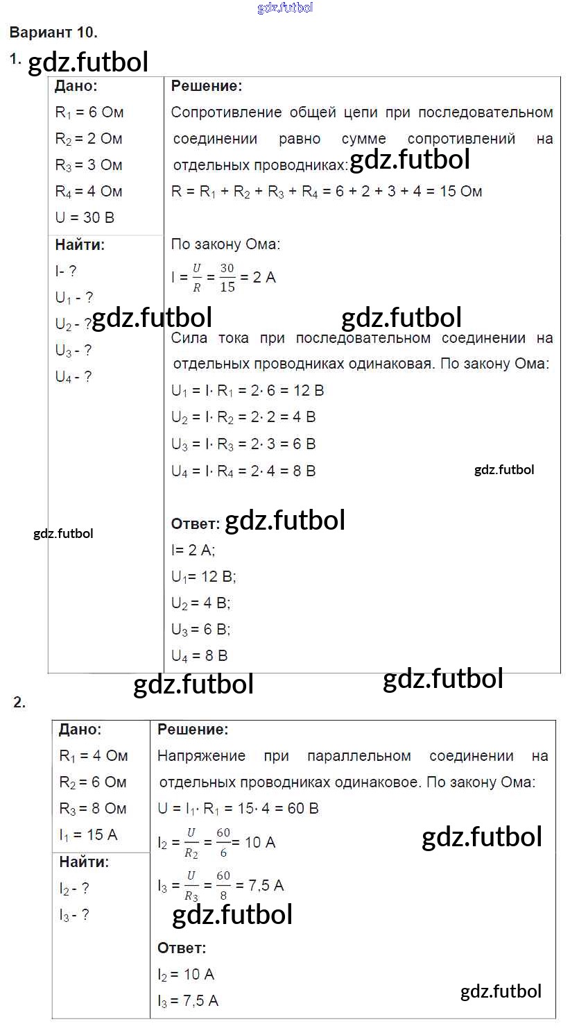 Готовые домашние задания по Физике за 8 класс Марон Дидактические материалы Вертикаль 2016 ФГОС - СР №9. Соединение проводников. Варианты 10