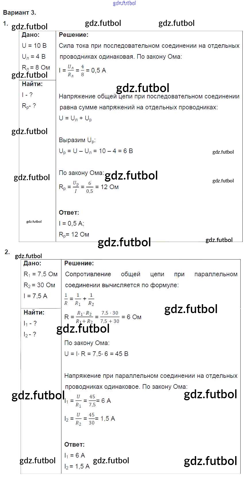 Готовые домашние задания по Физике за 8 класс Марон Дидактические материалы Вертикаль 2016 ФГОС - СР №9. Соединение проводников. Варианты 3