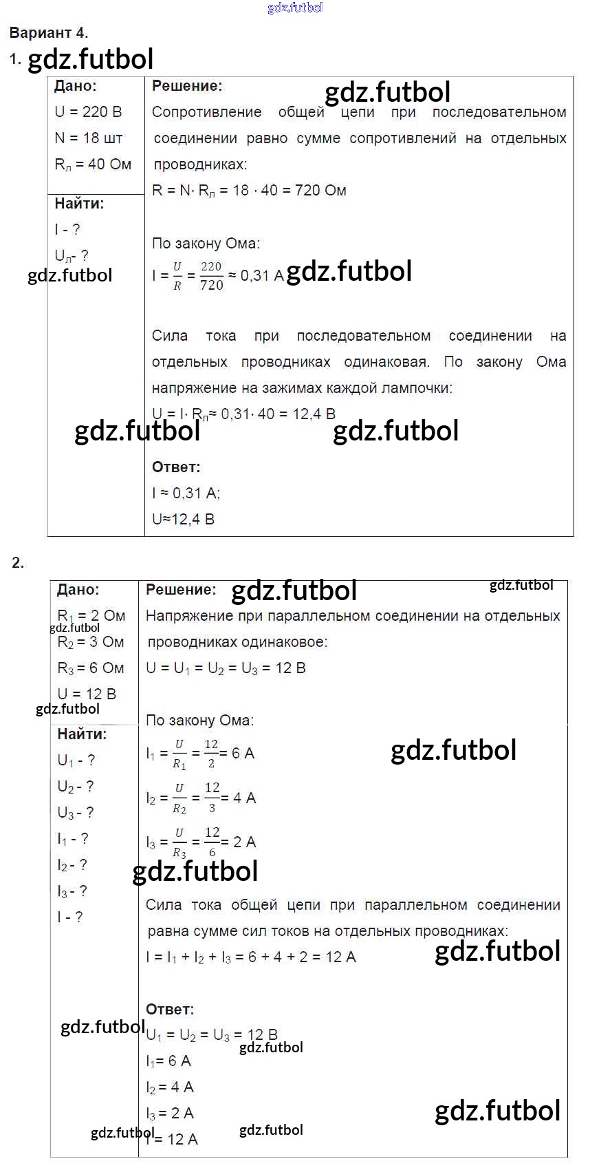 Готовые домашние задания по Физике за 8 класс Марон Дидактические материалы Вертикаль 2016 ФГОС - СР №9. Соединение проводников. Варианты 4
