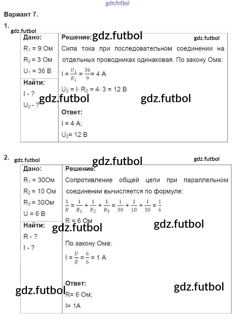 Готовые домашние задания по Физике за 8 класс Марон Дидактические материалы Вертикаль 2016 ФГОС - СР №9. Соединение проводников. Варианты 7