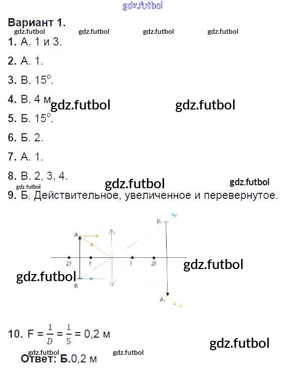 Готовые домашние задания по Физике за 8 класс Марон Дидактические материалы Вертикаль 2016 ФГОС - Тест №10. Оптические явления. Варианты 1
