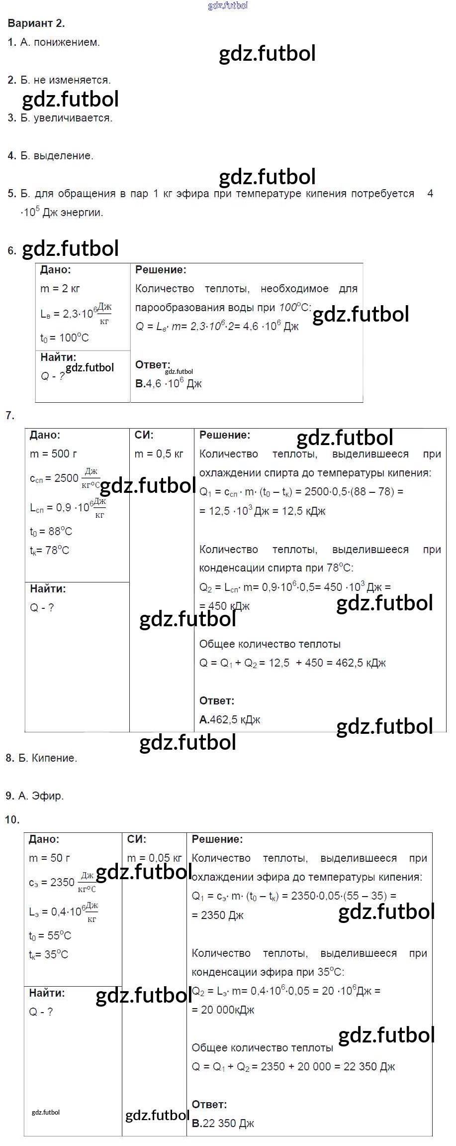 Готовые домашние задания по Физике за 8 класс Марон Дидактические материалы Вертикаль 2016 ФГОС - Тест №4. Испарение и конденсация. Варианты 2