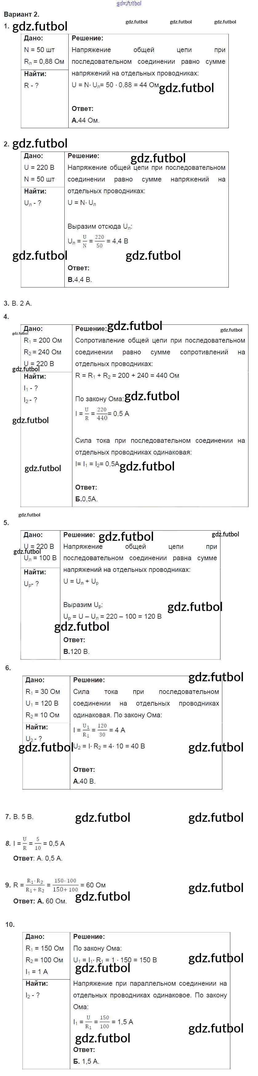 Готовые домашние задания по Физике за 8 класс Марон Дидактические материалы Вертикаль 2016 ФГОС - Тест №7. Соединение проводников. Варианты 2