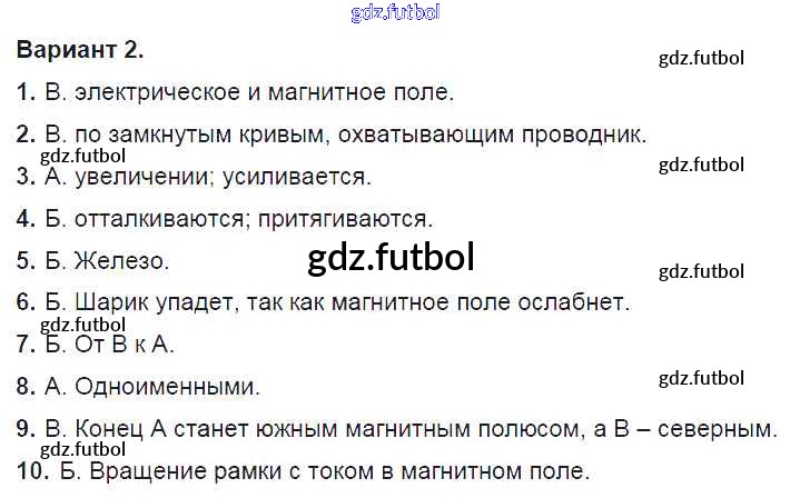 Готовые домашние задания по Физике за 8 класс Марон Дидактические материалы Вертикаль 2016 ФГОС - Тест №9. Электромагнитные явления. Варианты 2
