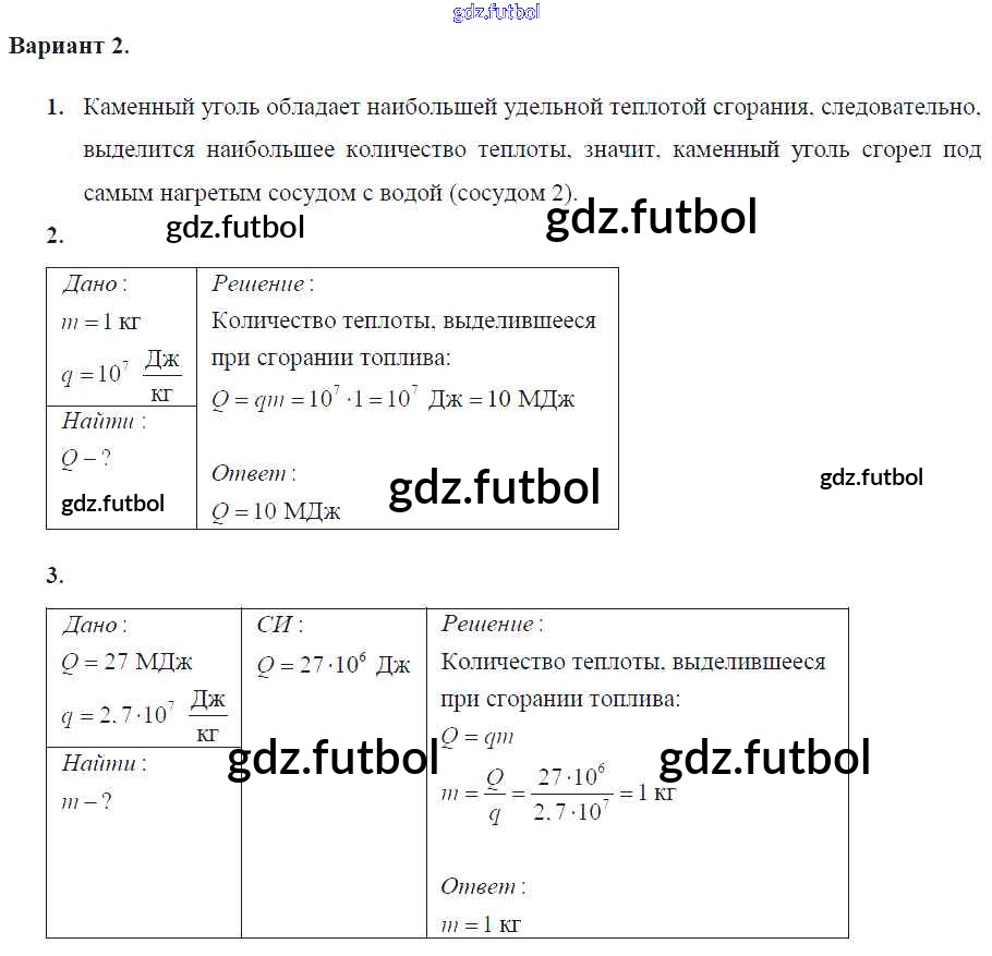 Готовые домашние задания по Физике за 8 класс Марон Самостоятельные и контрольные работы Вертикаль 2017 ФГОС - СР-№10 Вариант-2