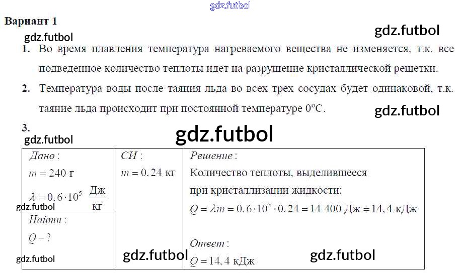 Готовые домашние задания по Физике за 8 класс Марон Самостоятельные и контрольные работы Вертикаль 2017 ФГОС - СР-№15 Вариант-1