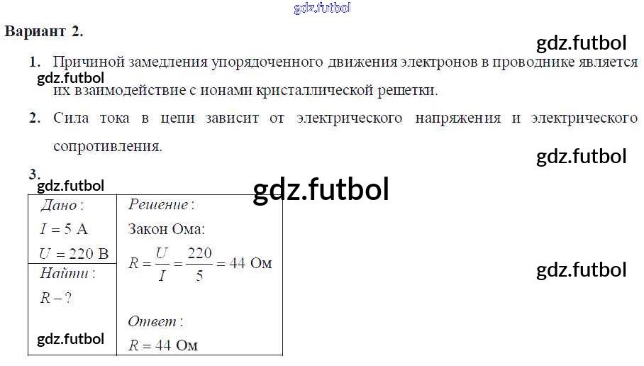 Готовые домашние задания по Физике за 8 класс Марон Самостоятельные и контрольные работы Вертикаль 2017 ФГОС - СР-№43 Вариант-2