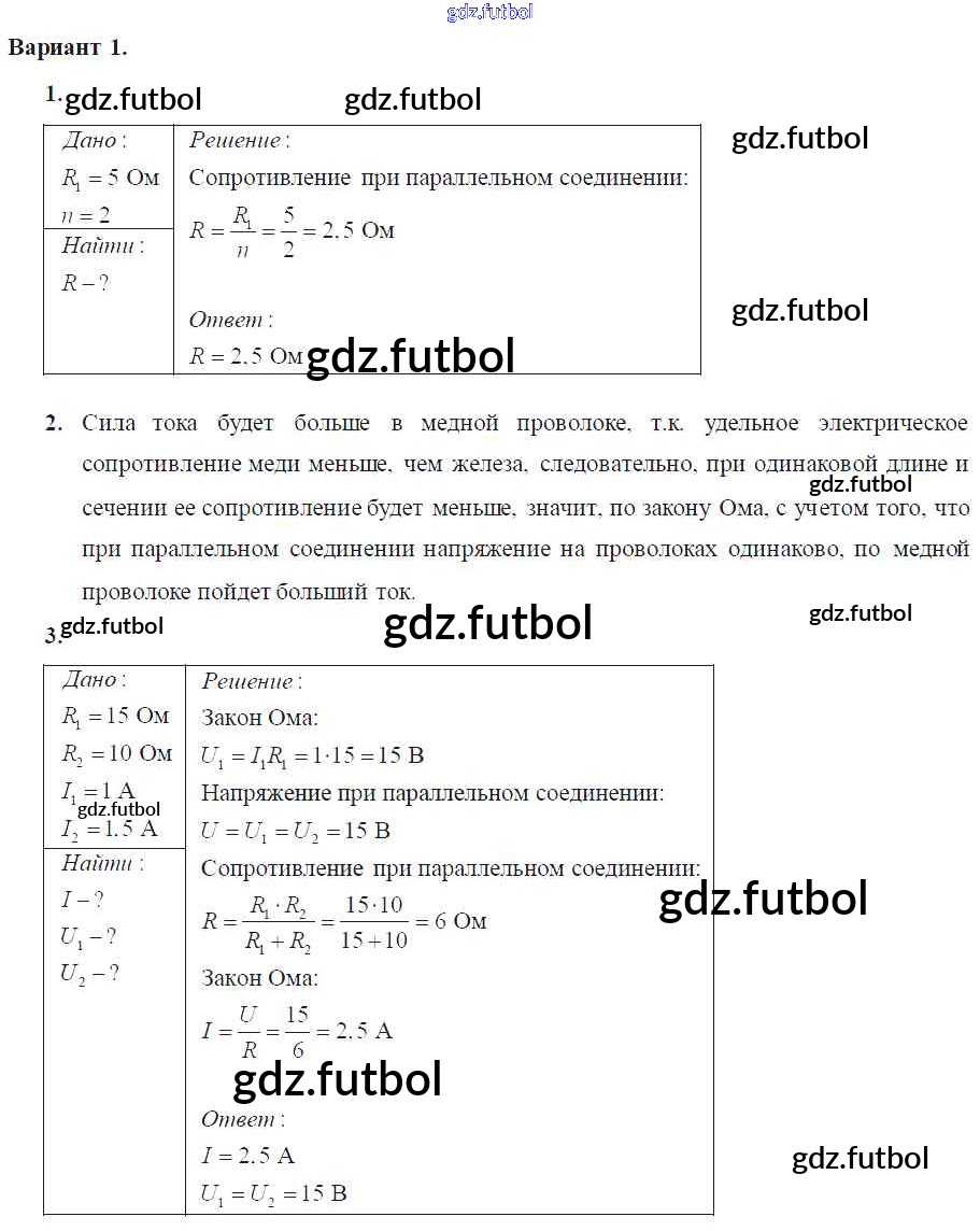 Готовые домашние задания по Физике за 8 класс Марон Самостоятельные и контрольные работы Вертикаль 2017 ФГОС - СР-№49 Вариант-1