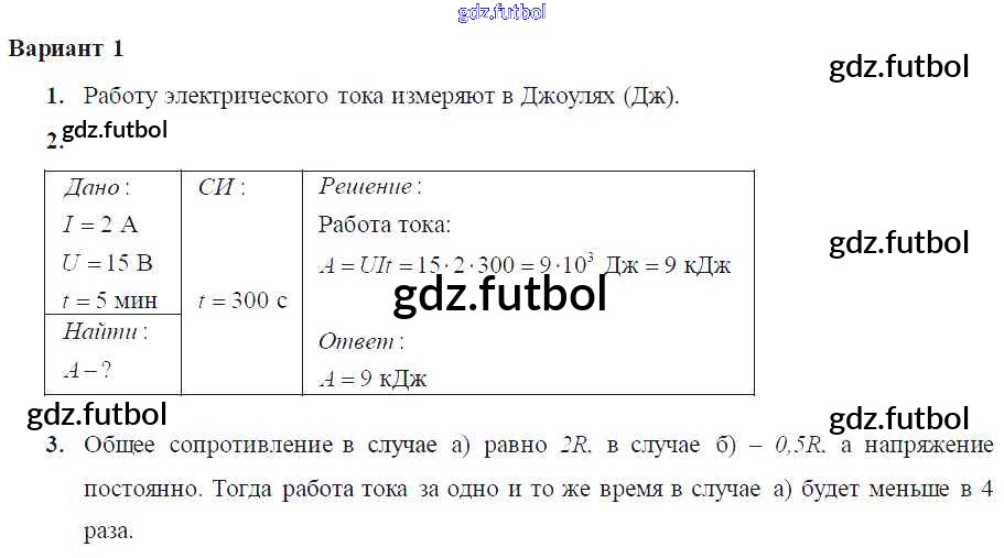 Готовые домашние задания по Физике за 8 класс Марон Самостоятельные и контрольные работы Вертикаль 2017 ФГОС - СР-№50 Вариант-1