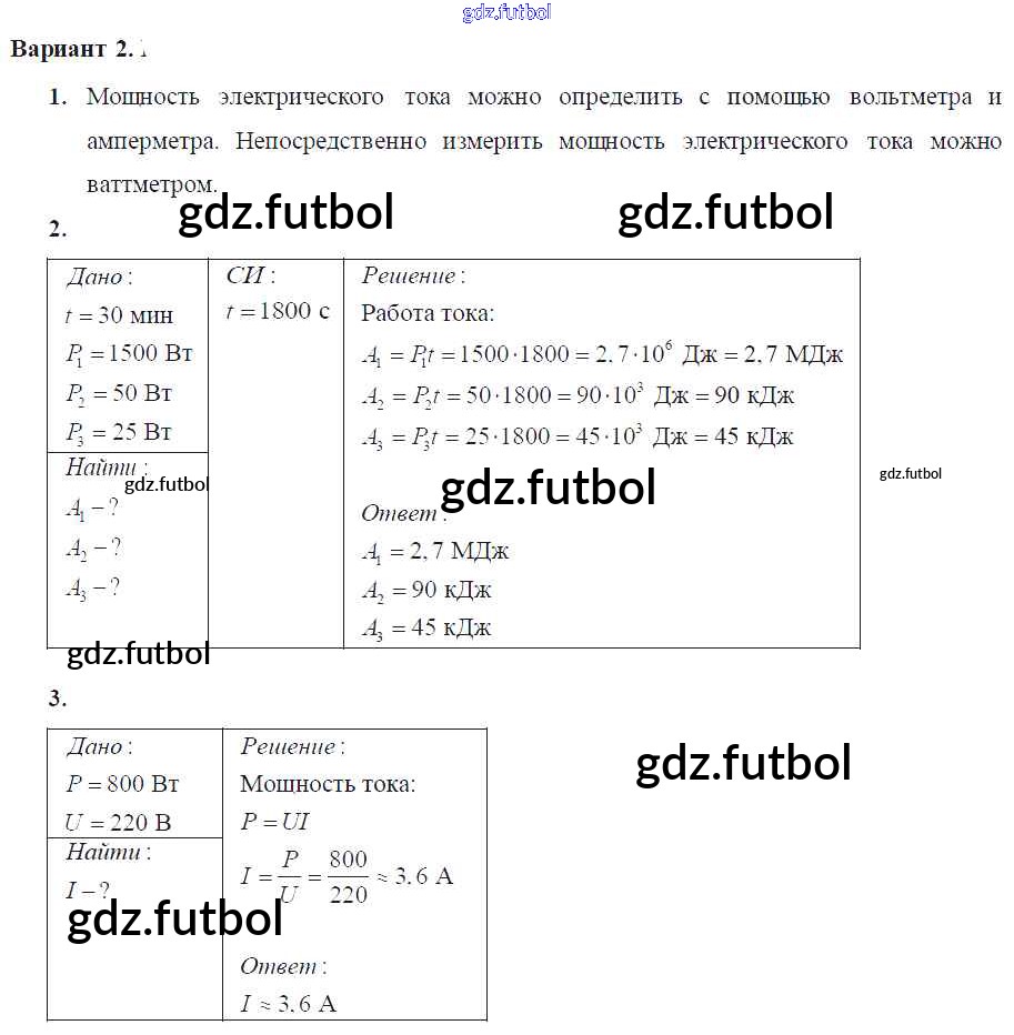Готовые домашние задания по Физике за 8 класс Марон Самостоятельные и контрольные работы Вертикаль 2017 ФГОС - СР-№51 Вариант-2