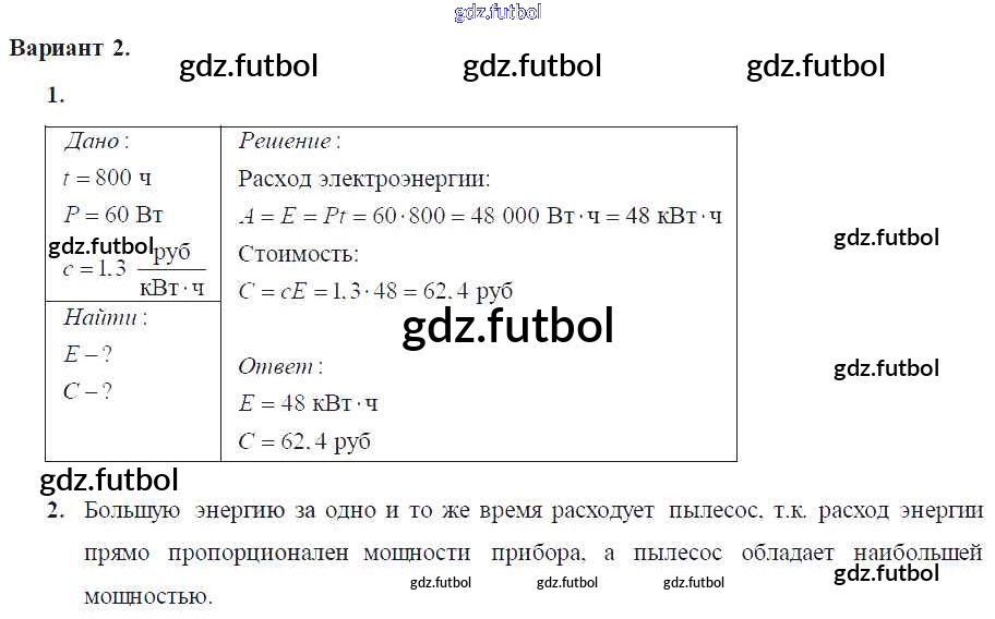 Готовые домашние задания по Физике за 8 класс Марон Самостоятельные и контрольные работы Вертикаль 2017 ФГОС - СР-№52 Вариант-2