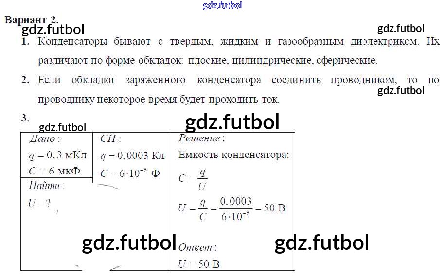 Готовые домашние задания по Физике за 8 класс Марон Самостоятельные и контрольные работы Вертикаль 2017 ФГОС - СР-№54 Вариант-2