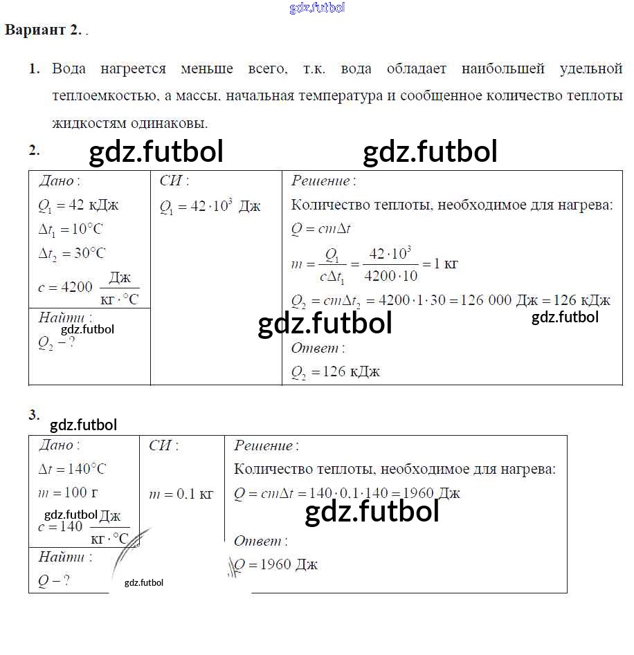 Готовые домашние задания по Физике за 8 класс Марон Самостоятельные и контрольные работы Вертикаль 2017 ФГОС - СР-№9 Вариант-2