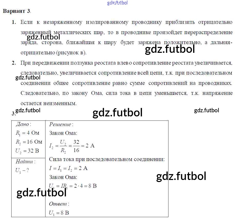 Готовые домашние задания по Физике за 8 класс Марон Самостоятельные и контрольные работы Вертикаль 2017 ФГОС - КР-№2 Вариант-3