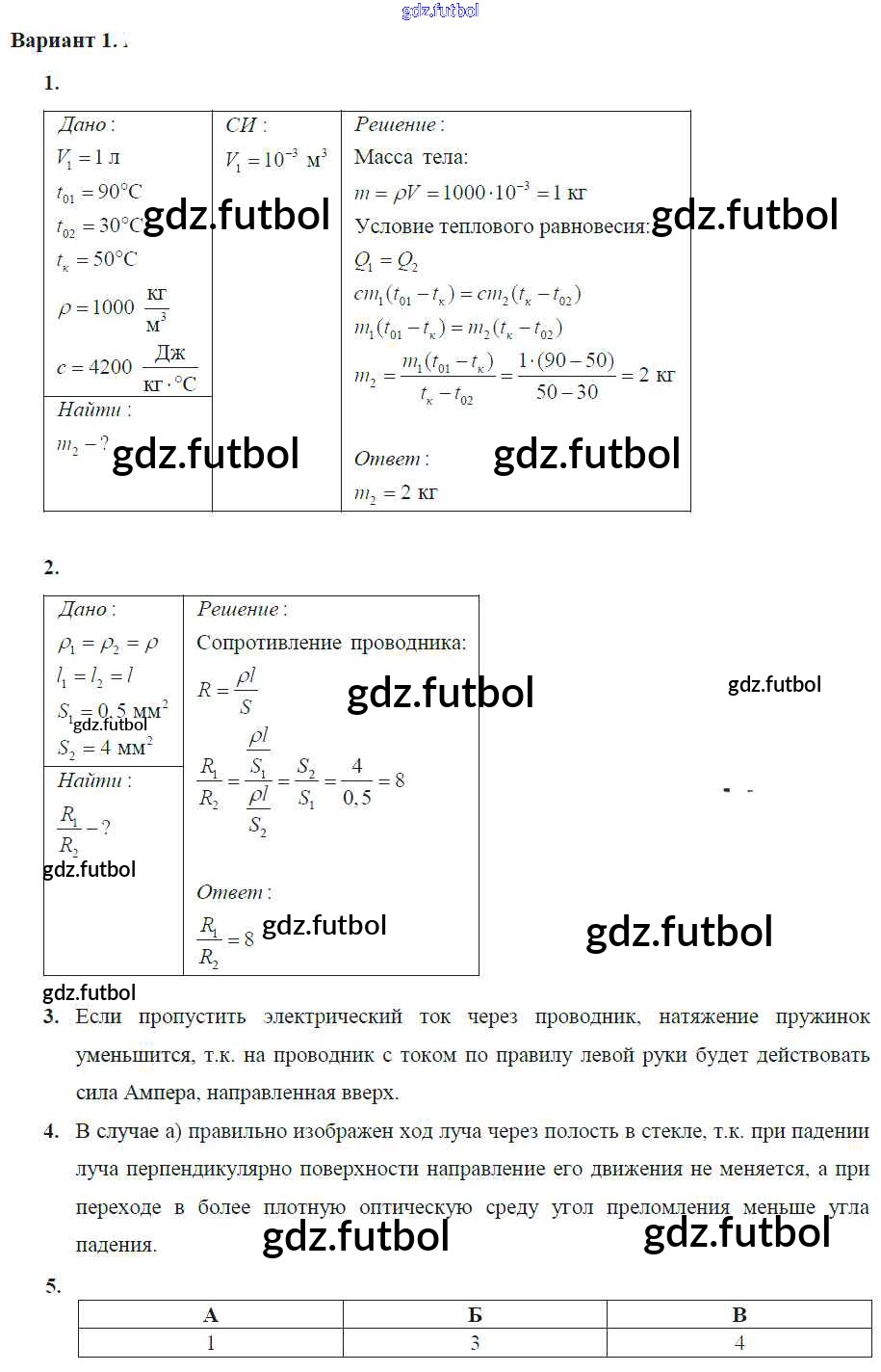 Готовые домашние задания по Физике за 8 класс Марон Самостоятельные и контрольные работы Вертикаль 2017 ФГОС - КР-№5 Вариант-1