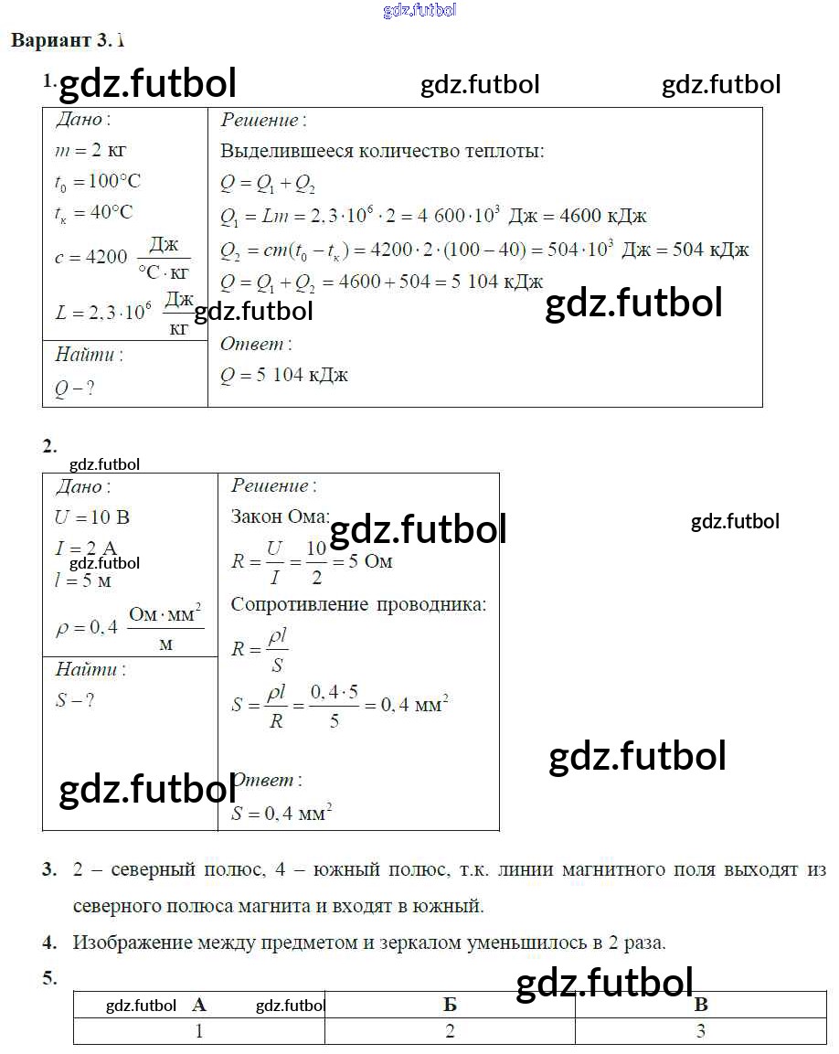 Готовые домашние задания по Физике за 8 класс Марон Самостоятельные и контрольные работы Вертикаль 2017 ФГОС - КР-№5 Вариант-3