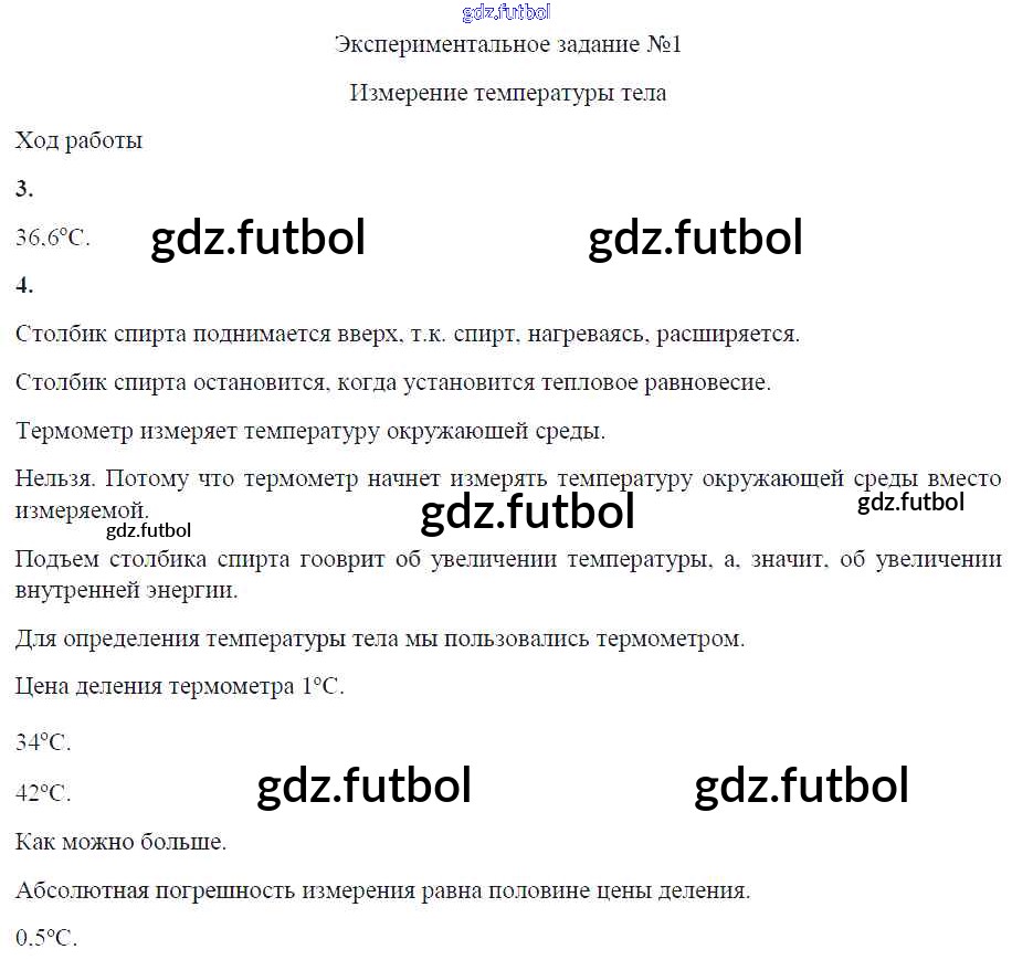 Готовые домашние задания по Физике за 8 класс Минькова Тетрадь для лабораторных работ УМК 2014 ФГОС - Экспериментальные задания ЭЗ №1. Измерение температуры тела