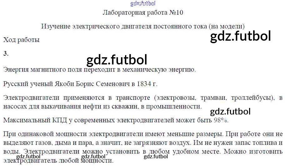 Готовые домашние задания по Физике за 8 класс Минькова Тетрадь для лабораторных работ УМК 2014 ФГОС - Лабораторные работы ЛР №10. Изучение электрического двигателя постоянного тока