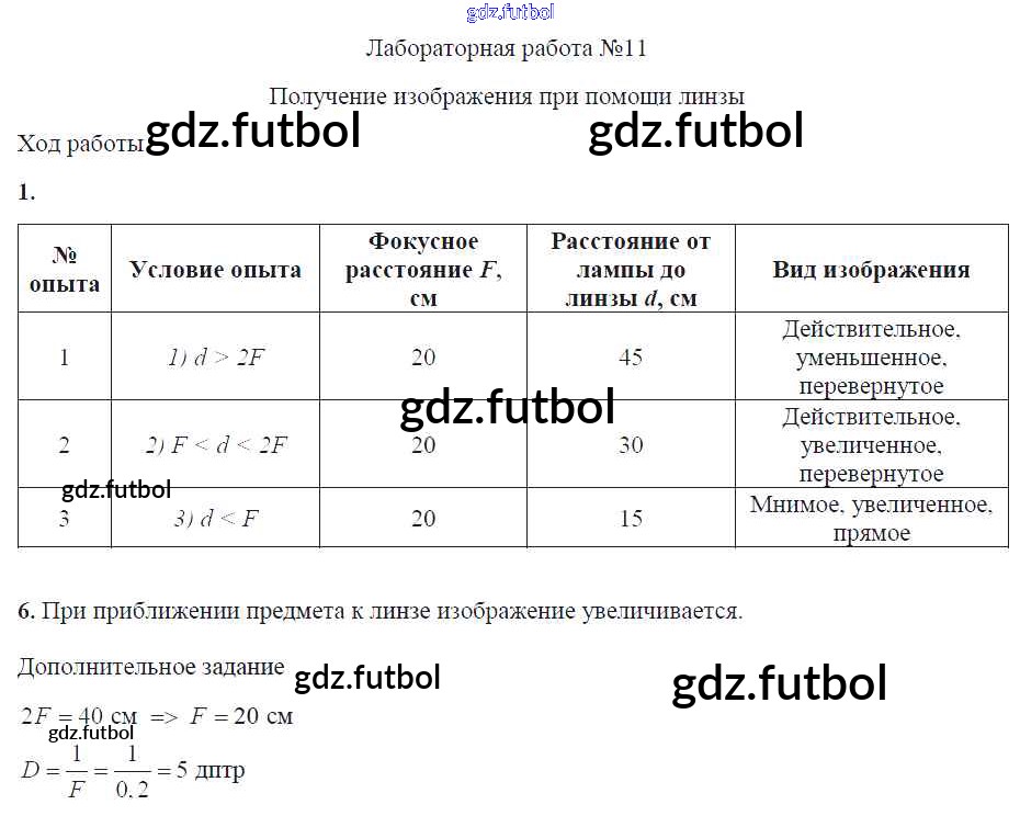 Готовые домашние задания по Физике за 8 класс Минькова Тетрадь для лабораторных работ УМК 2014 ФГОС - Лабораторные работы ЛР №11. Получение изображения при помощи линзы