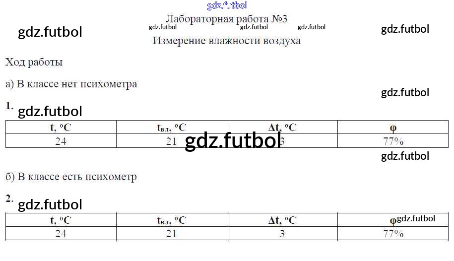 Готовые домашние задания по Физике за 8 класс Минькова Тетрадь для лабораторных работ УМК 2014 ФГОС - Лабораторные работы ЛР №3. Измерение влажности воздуха
