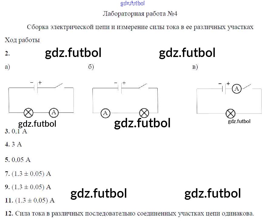Готовые домашние задания по Физике за 8 класс Минькова Тетрадь для лабораторных работ УМК 2014 ФГОС - Лабораторные работы ЛР №4. Сборка электрической цепи и измерение силы тока в её различных участках
