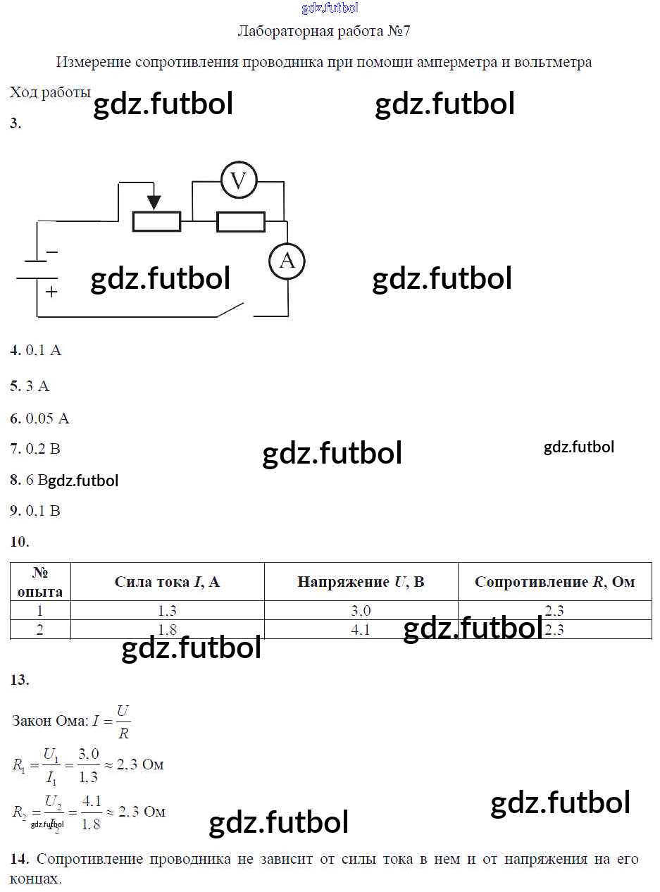 Готовые домашние задания по Физике за 8 класс Минькова Тетрадь для лабораторных работ УМК 2014 ФГОС - Лабораторные работы ЛР №7. Измерение сопротивления проводника при помощи амперметра и вольтметра