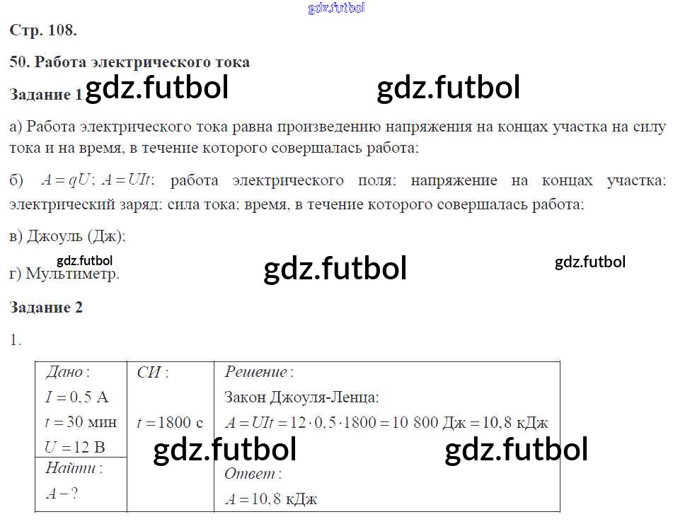 Готовые домашние задания по Физике за 8 класс Перышкин Рабочая тетрадь УМК 2017 ФГОС - Страницы 108