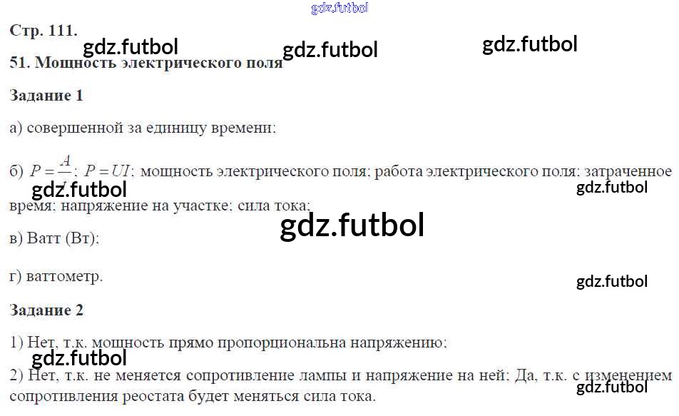 Готовые домашние задания по Физике за 8 класс Перышкин Рабочая тетрадь УМК 2017 ФГОС - Страницы 111