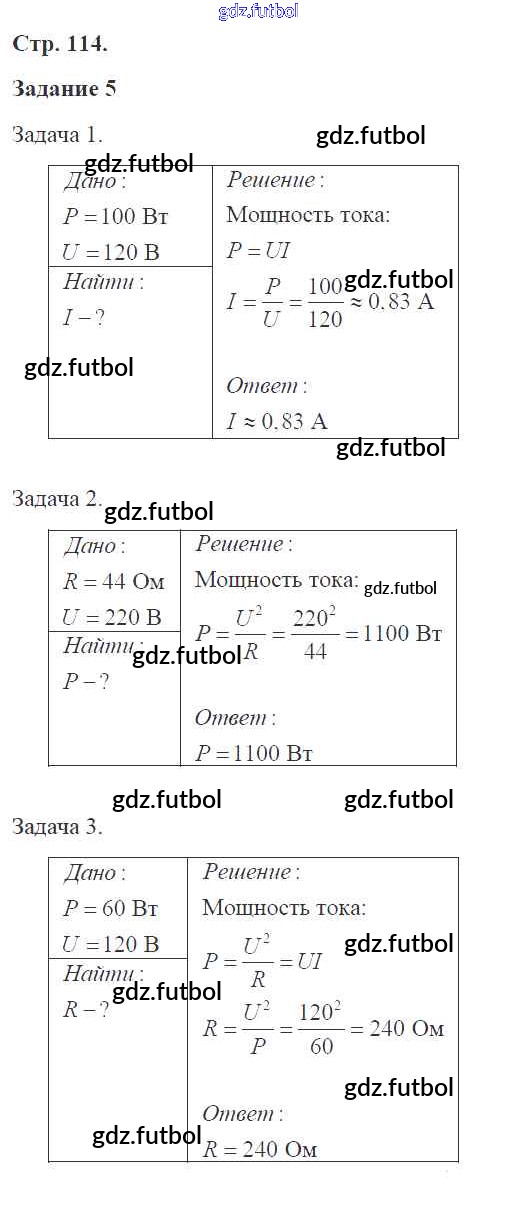 Готовые домашние задания по Физике за 8 класс Перышкин Рабочая тетрадь УМК 2017 ФГОС - Страницы 114